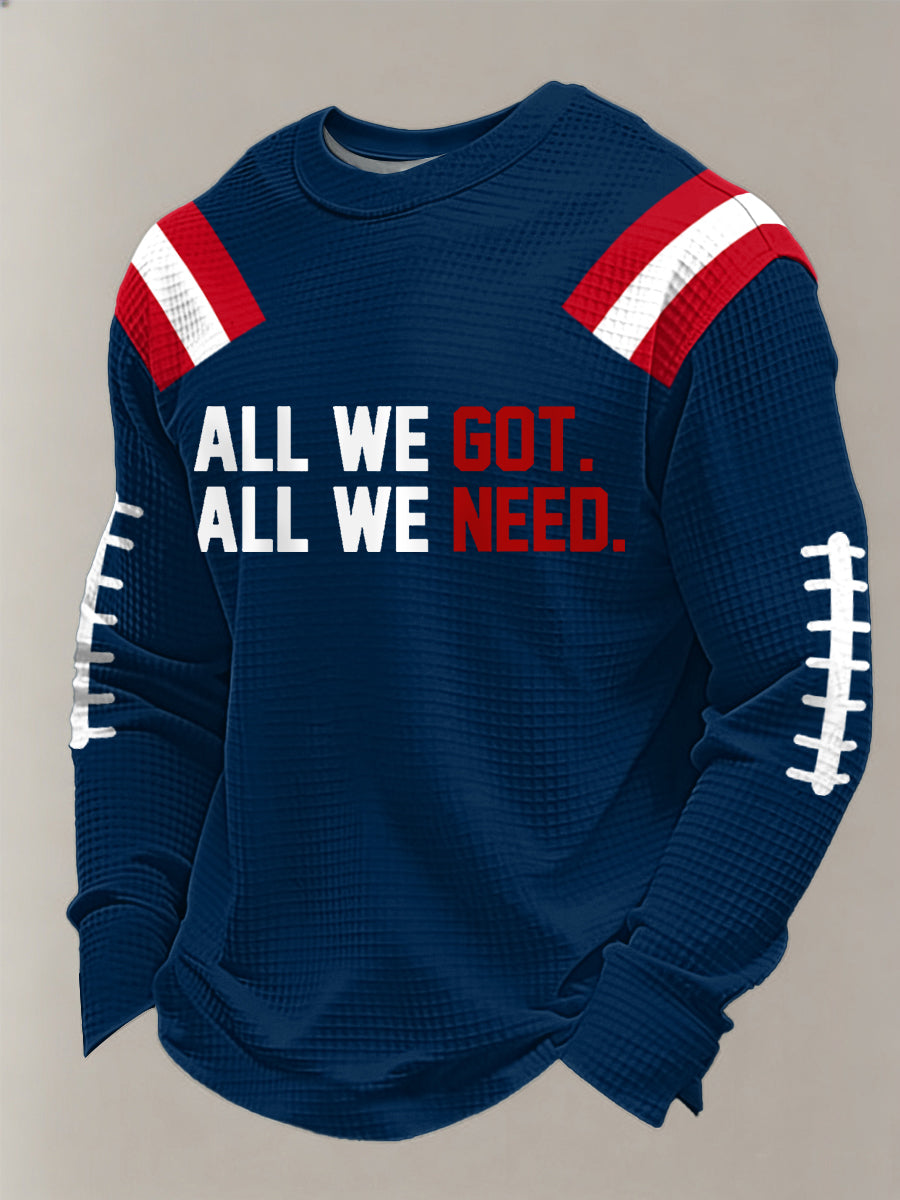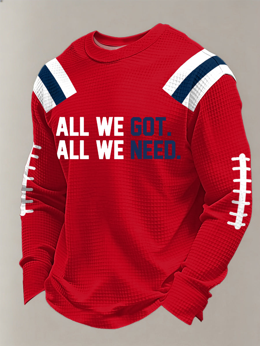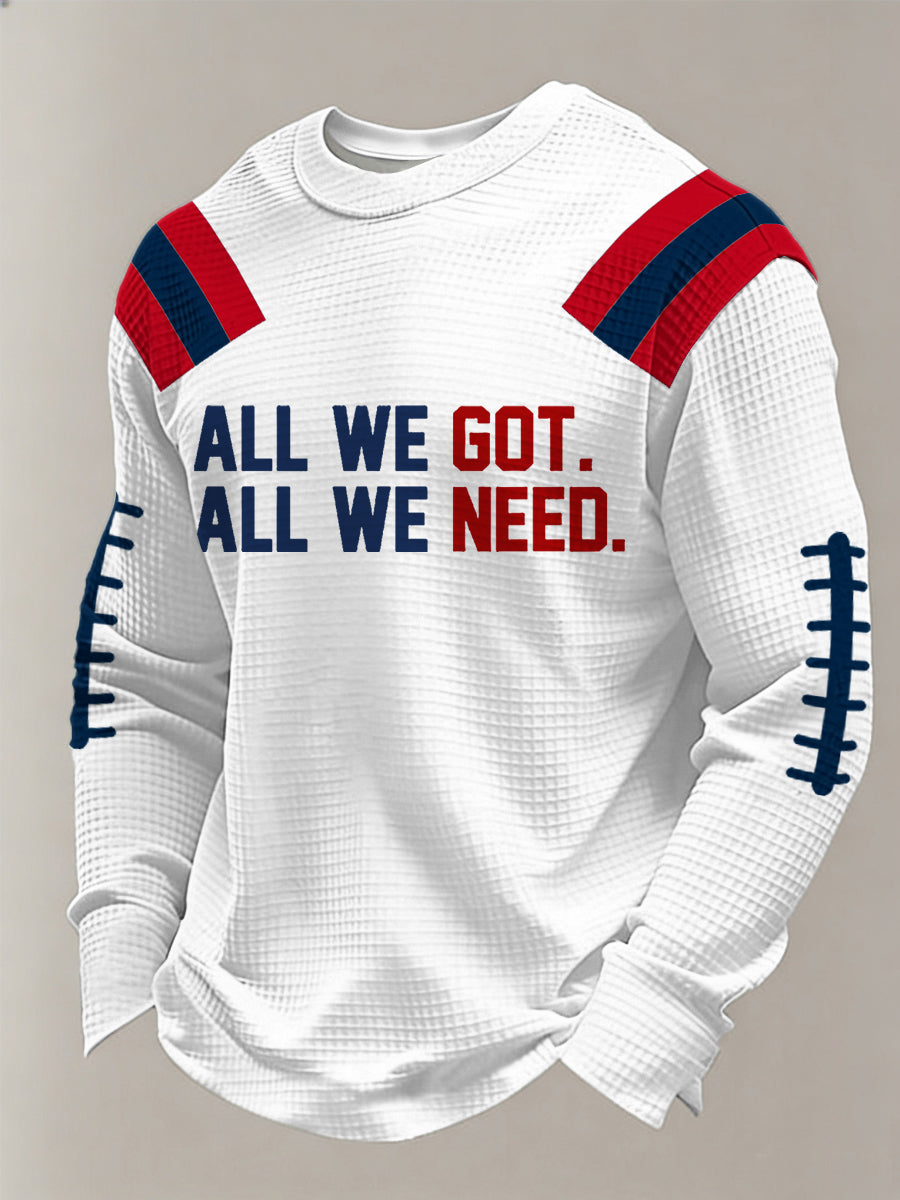 Men's All We Got All We Need. Football Fans Gameday Casual Waffle Long Sleeve T-Shirt