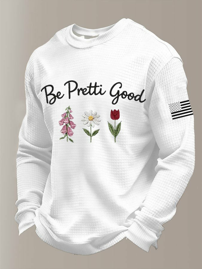Men's Be Pretti Good Printed Waffle Long Sleeve Sweatshirt