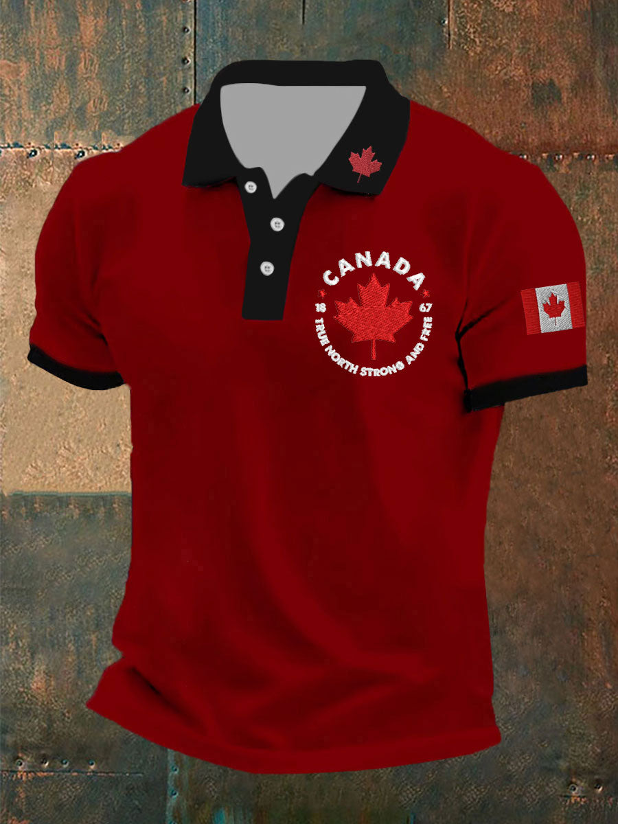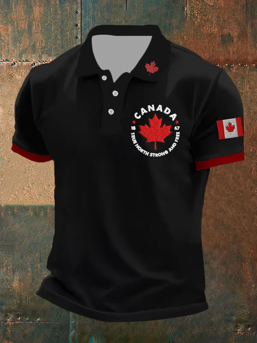 Men's Canada True North Strong And Free Print Button T-Shirt