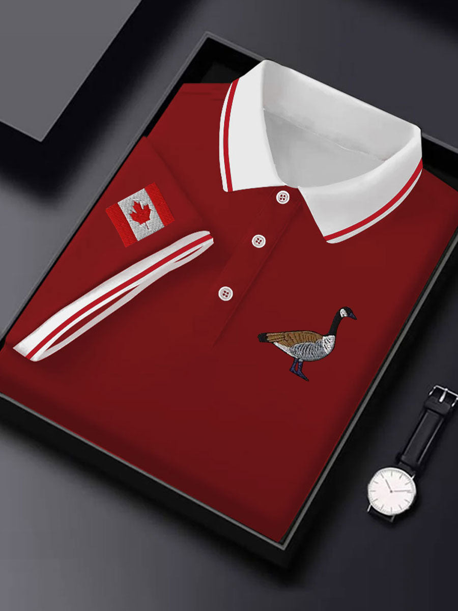 Men's Canadian Flag Goose Embroidered Casual Button Top