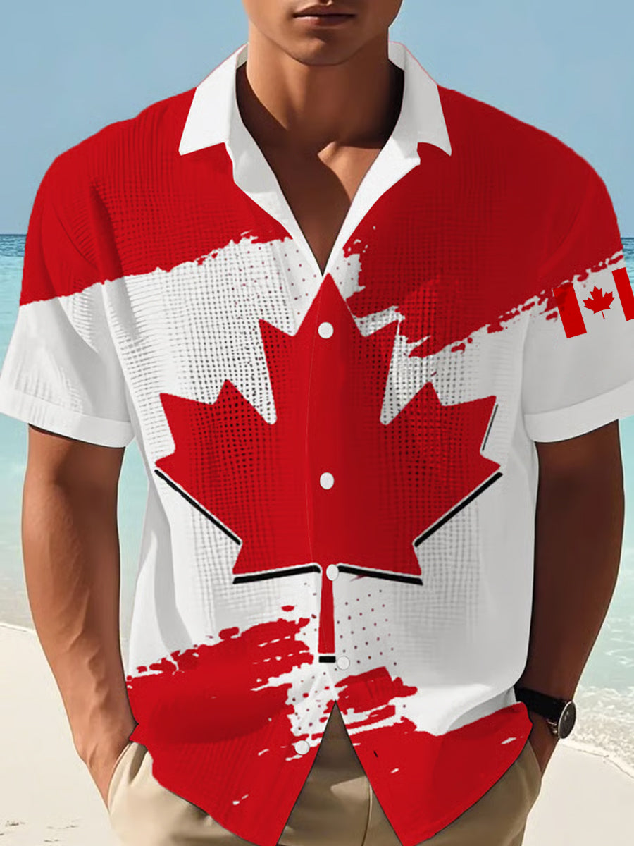 Men's Canadian Flag Maple Leaf Print Casual Shirt
