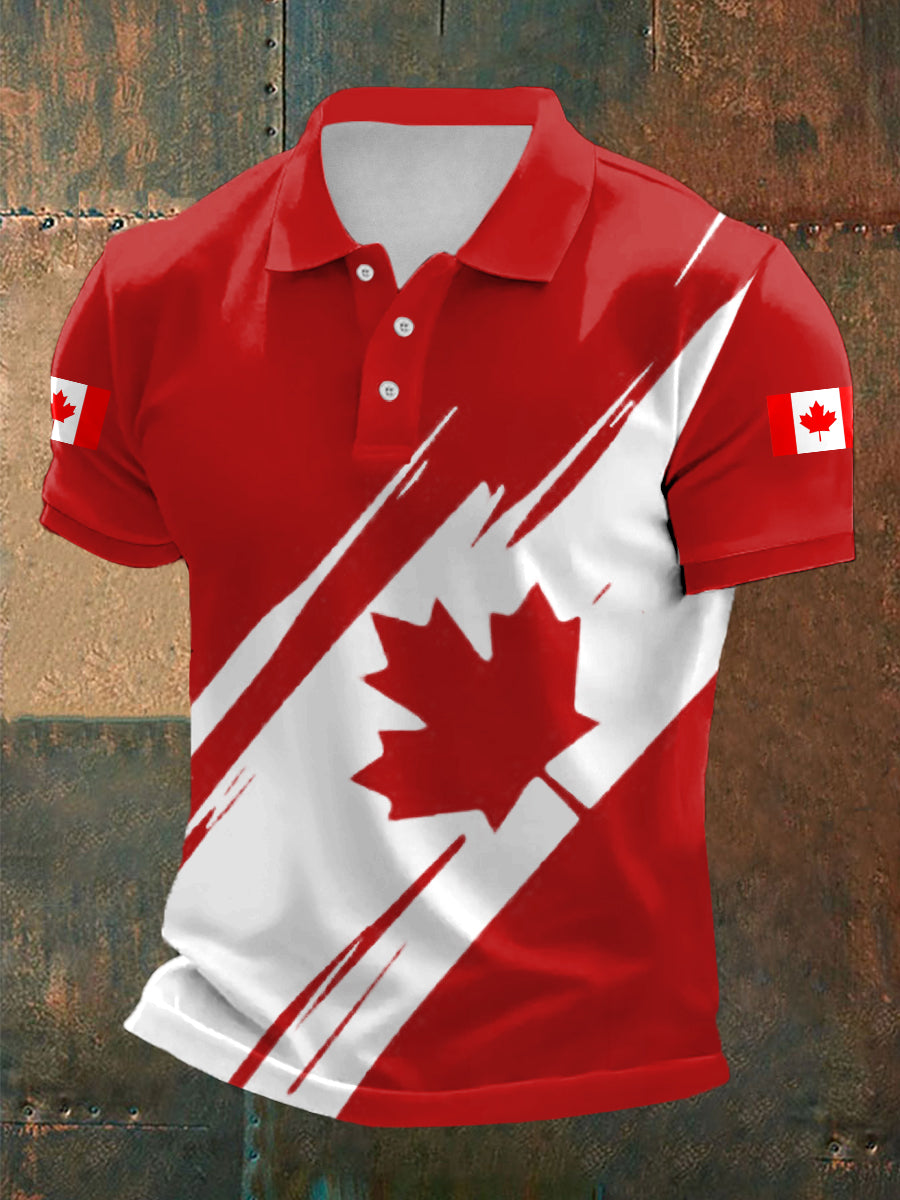 Men's Canadian Flag Maple Leaf Print Casual V-Neck Top