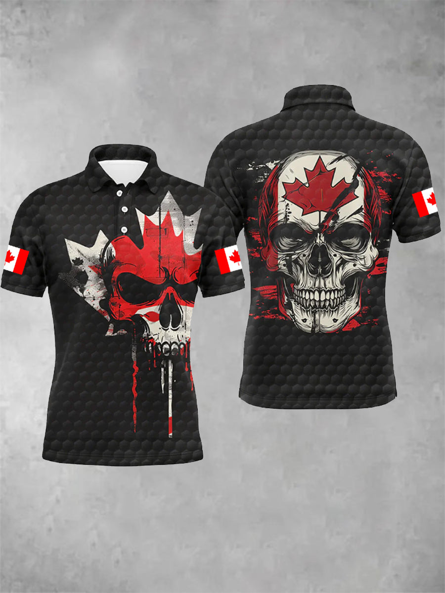 Men's Canadian Flag Skull Mens Golf  Short Sleeve Shirt