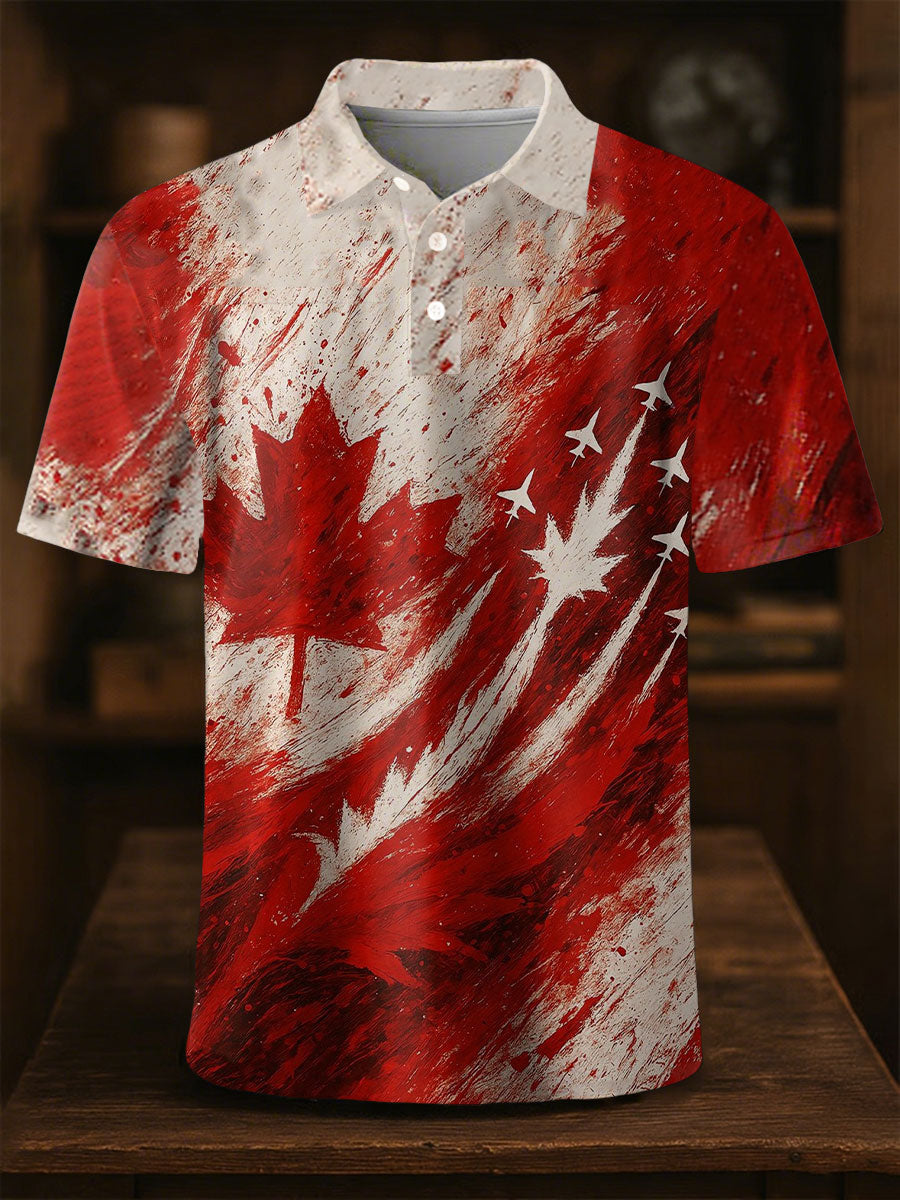 Men's Canadian Maple Leaf Print Casual Button-Down Top