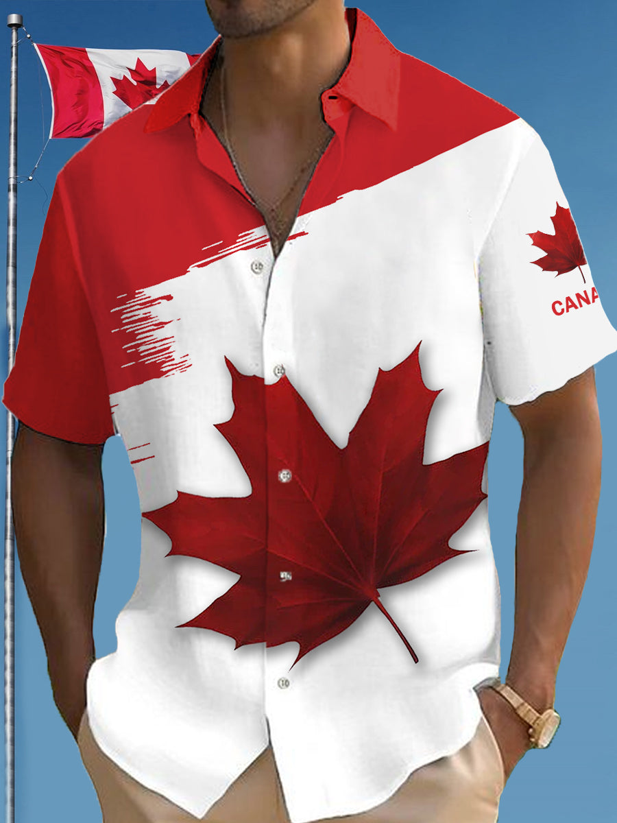 Men's Canadian Maple Leaf Print Casual Short Sleeve Shirt