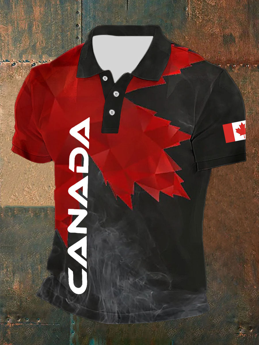 Men's Canadian Maple Leaf Print Casual Short Sleeve Tee