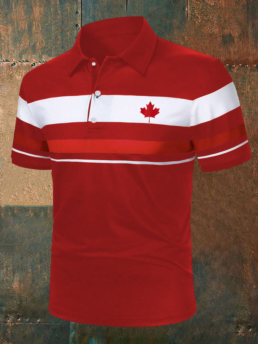 Men's Canadian Maple Leaf Stripes Print Casual Top