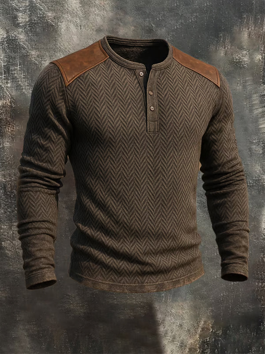 Men's Casual Vintage Distressed Printed Long Sleeve Henley Shirt