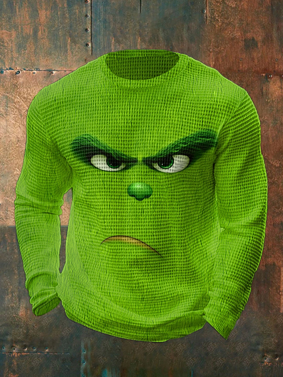 Men's Funny Classic Christmas Character Print Casual Waffle Top