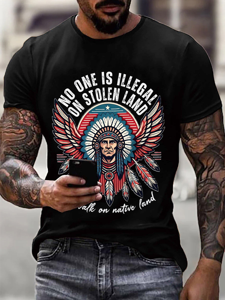 Men's No One Is Illegal On Stolen Land Printed T-shirt