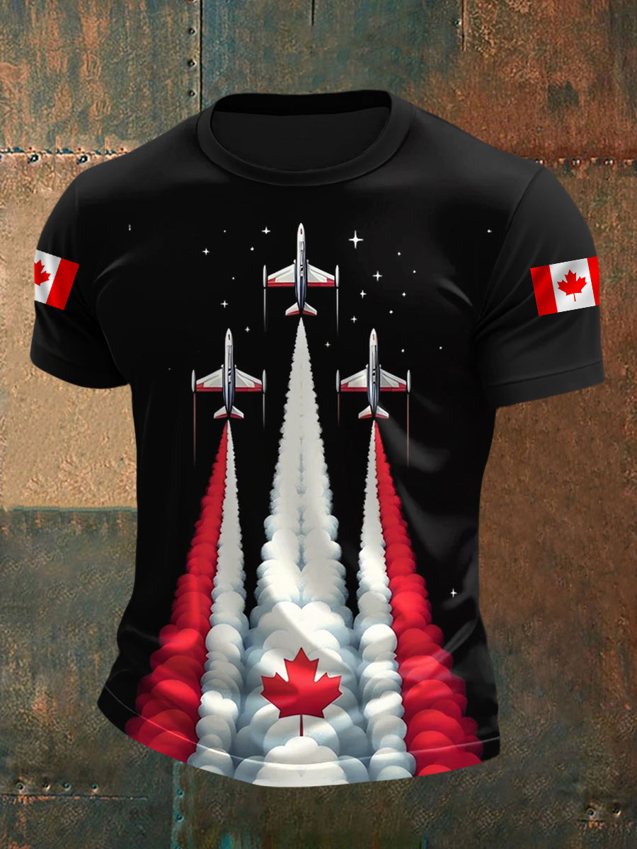 Men's Patriotic Canadian Air Plane Canada Flag and Maple Leaf Print Casual Tee