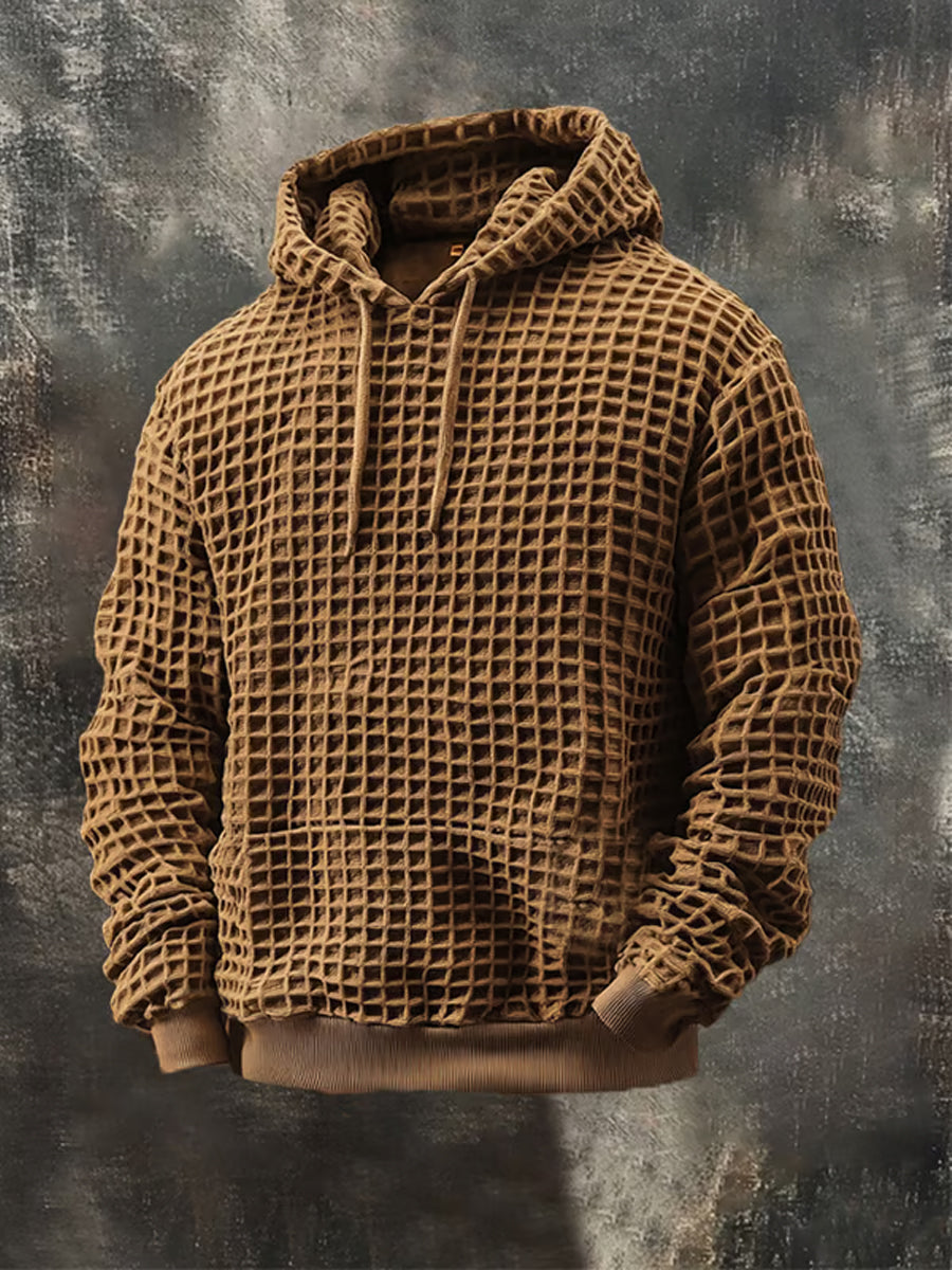 Men's Retro 3D Texture Casual Long-sleeved Hoodie with Pockets