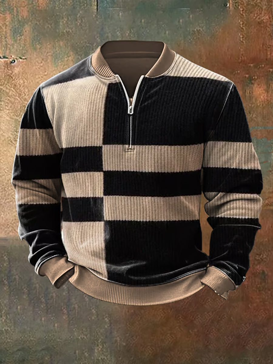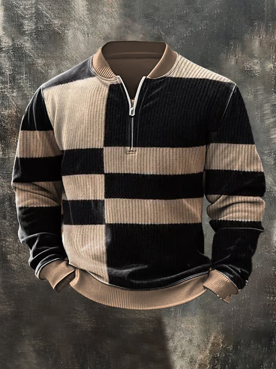 Men'S Retro Colorblock Print Casual Ziiper Sweatshirt