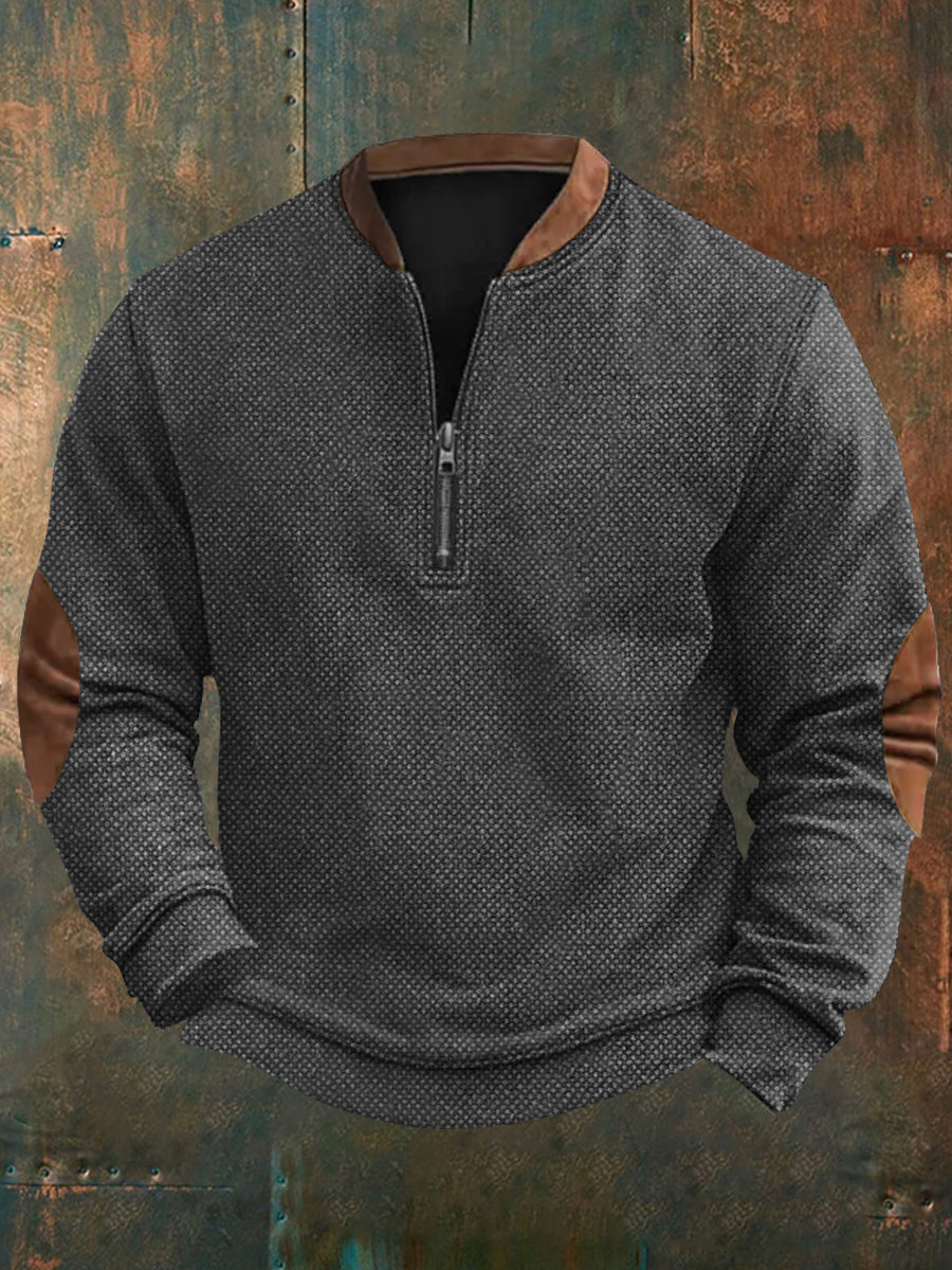 Men's Vintage Plaid Print Casual Zipper Sweatshirt