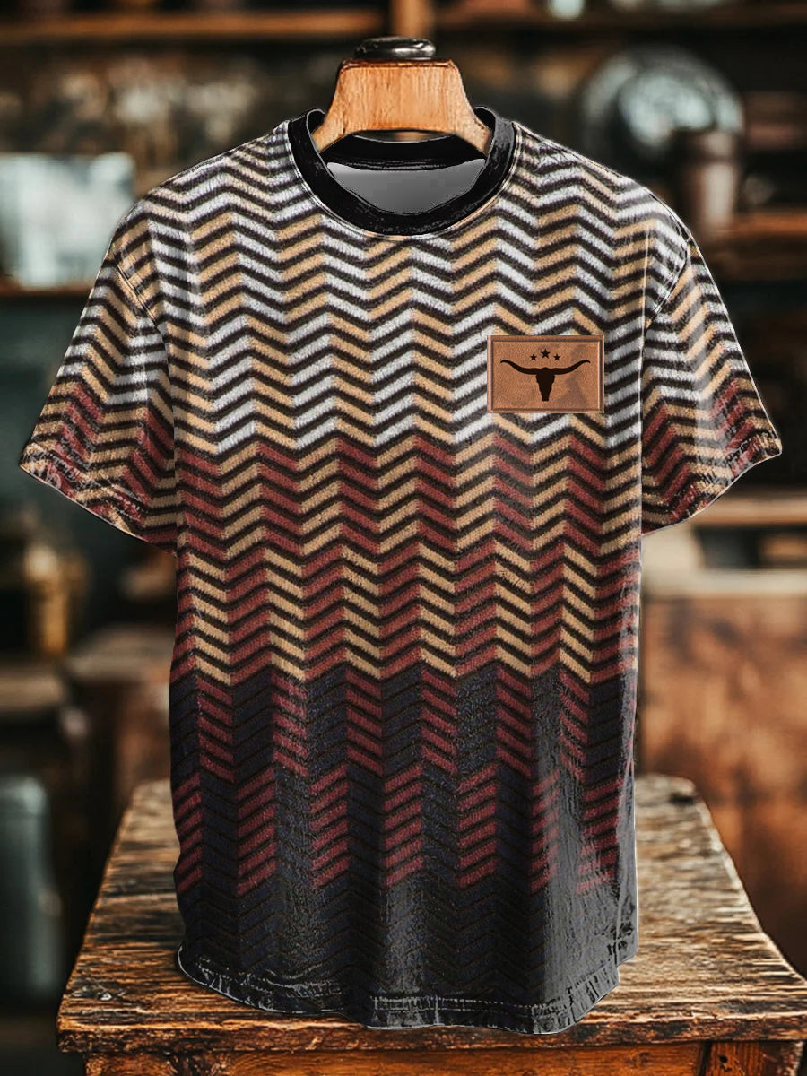 Men's Western Style Herringbone Textured Bull Head Printed T-shirt