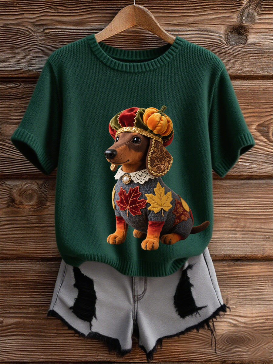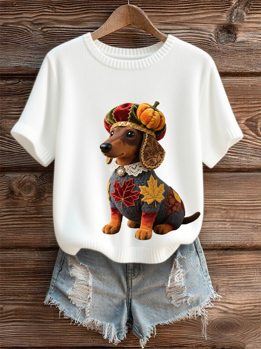 Women's Autumn Dog Art Print Short SleeveT-shirt