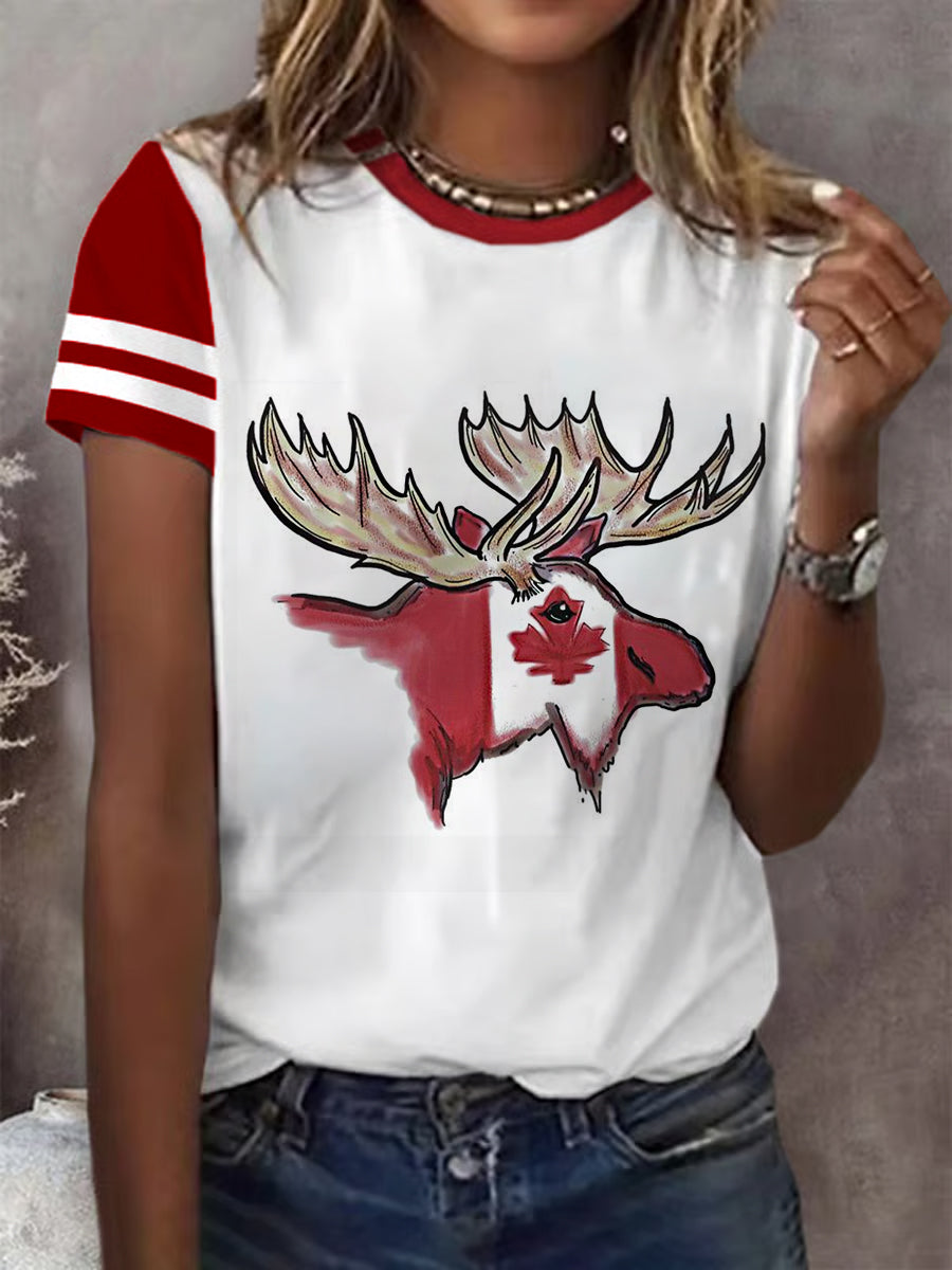Women's Canada Flag Maple Leaf Short Sleeve T-shirt