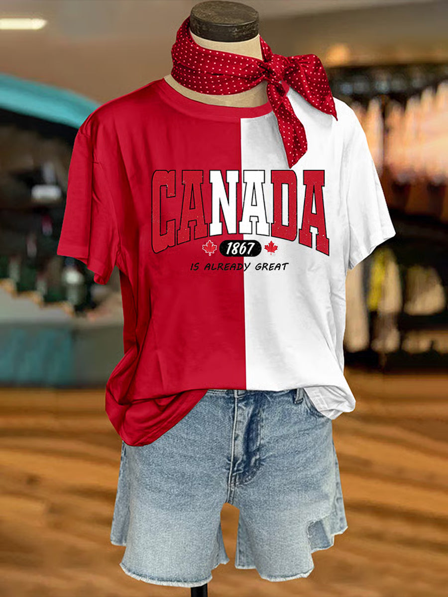 Women's Canada Is Already Great Est.1867 Canadian Maple Leaf Print Casual Tee