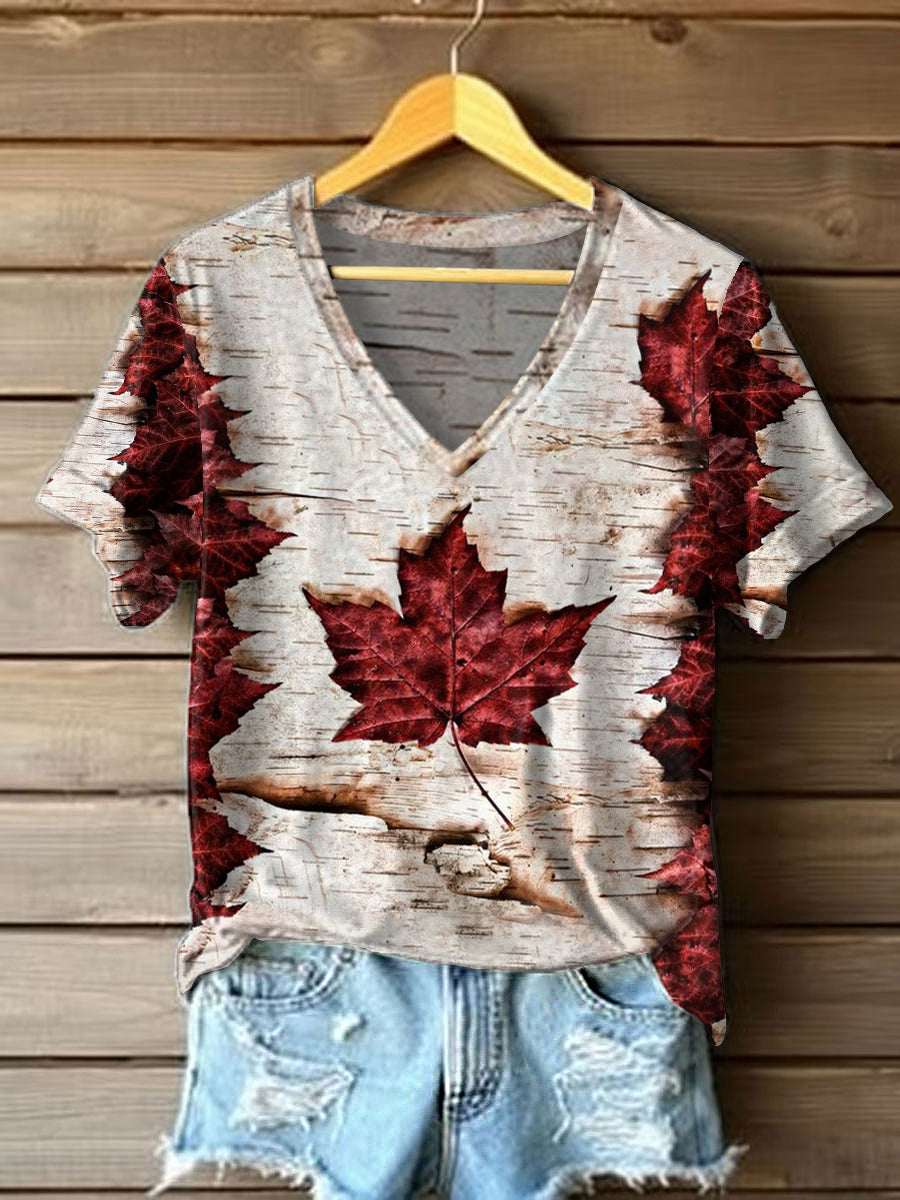 Women's Canadian Maple Leaf Landscape Print Casual Short Sleeve T-shirt