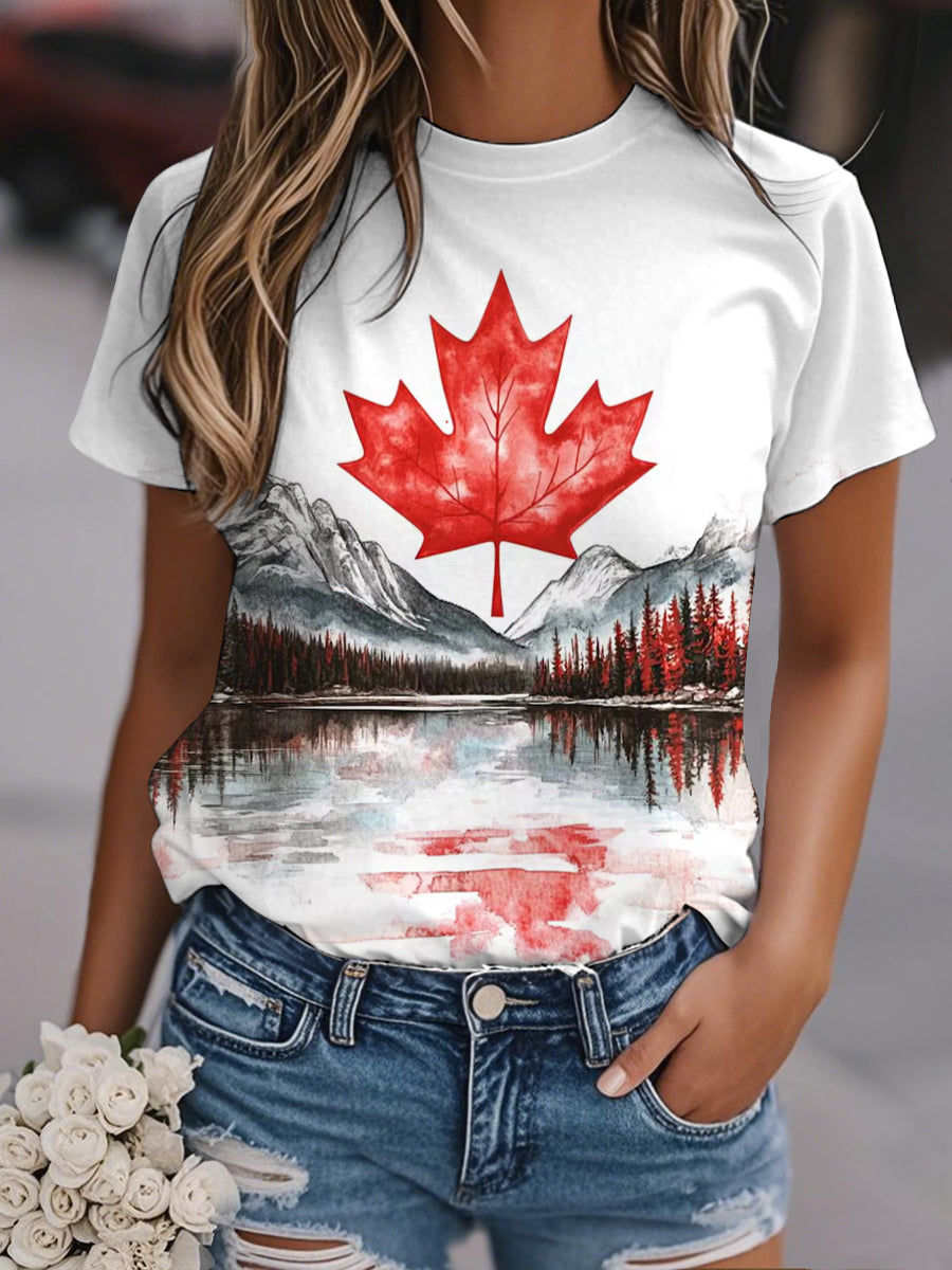 Women's Canadian Maple Leaf Nature Landscape Print Casual Tee