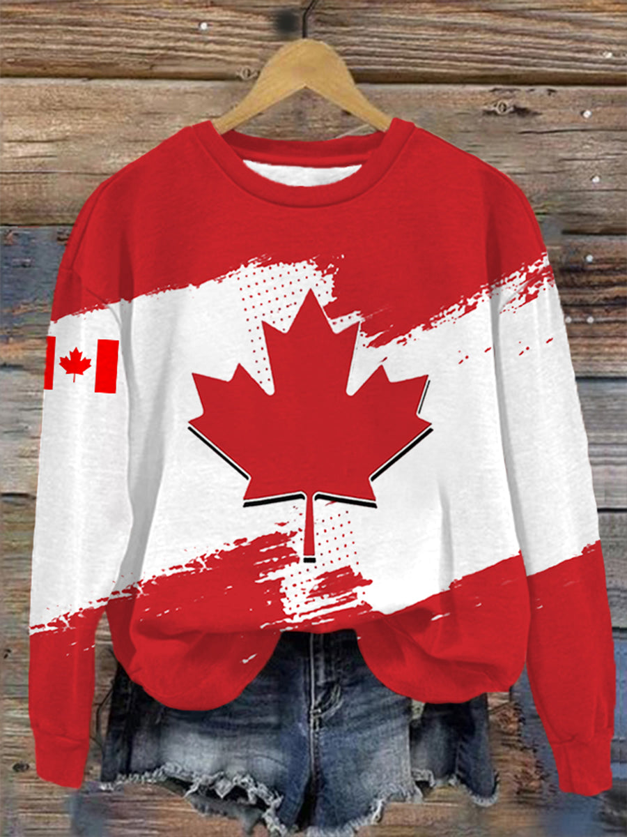 Women's Canadian Maple Leaf Print Casual Sweatshirt