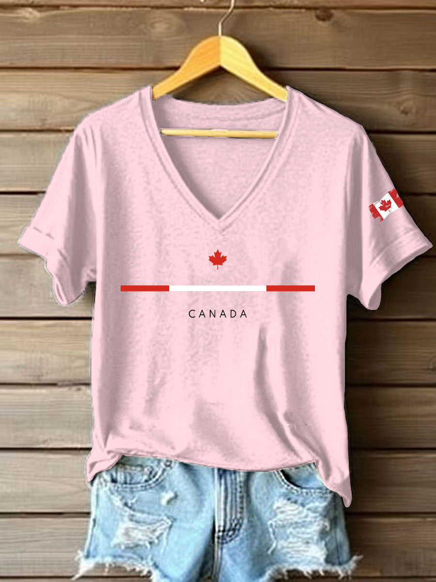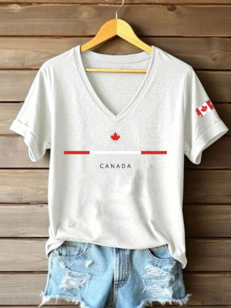 Women's Canadian Maple Leaf Printed Casual T-Shirt