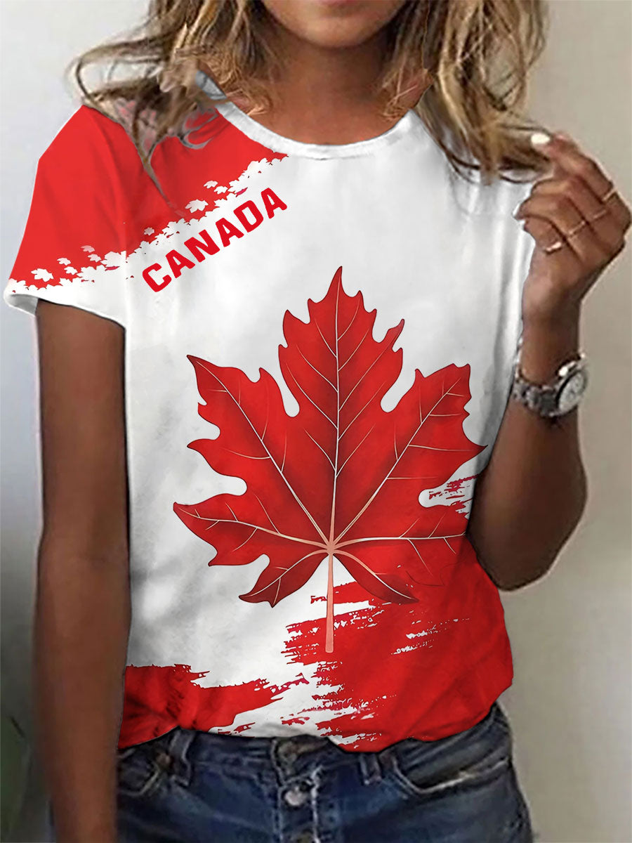 Women's Canadian Maple Leaf Printed Casual T-Shirt