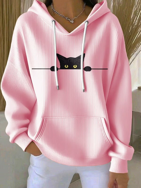 Women's Cat Print Casual Hoodie
