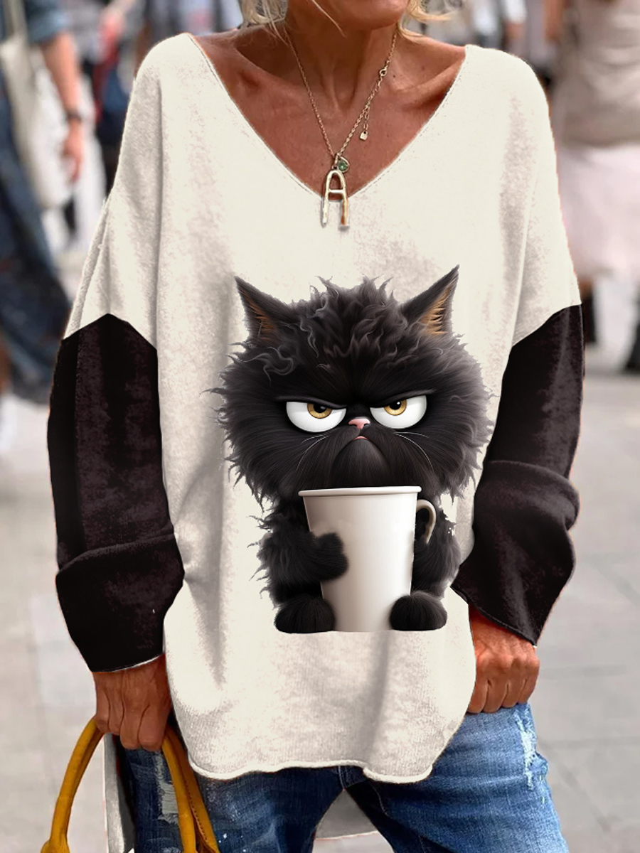 Women's cat Printed Casual Long Sleeve Tops