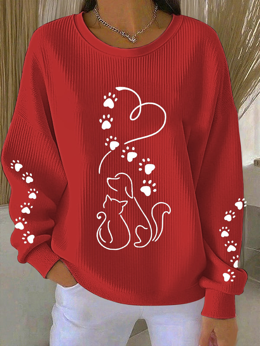 Women's Cute Cat And Dog Silhouette Print Sweatshirt