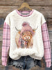 Women's Cute Highland Cow Plaid Print Casual Flannel Sweatshirt