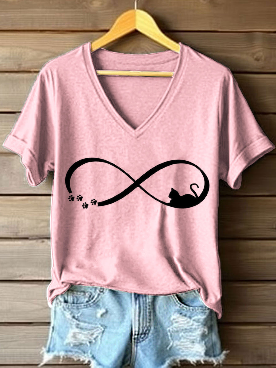 Women's Funny Cat Art Print V-Neck T-Shirt