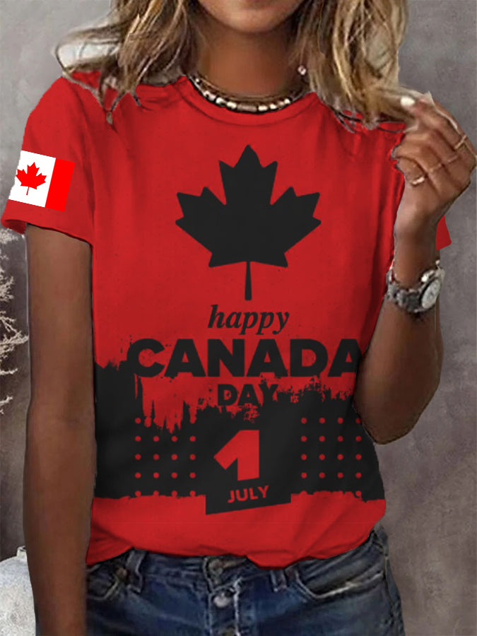 Women's Happy Canada Day Canadian Maple Leaf  Print Casual Short-Sleeved T-Shirt