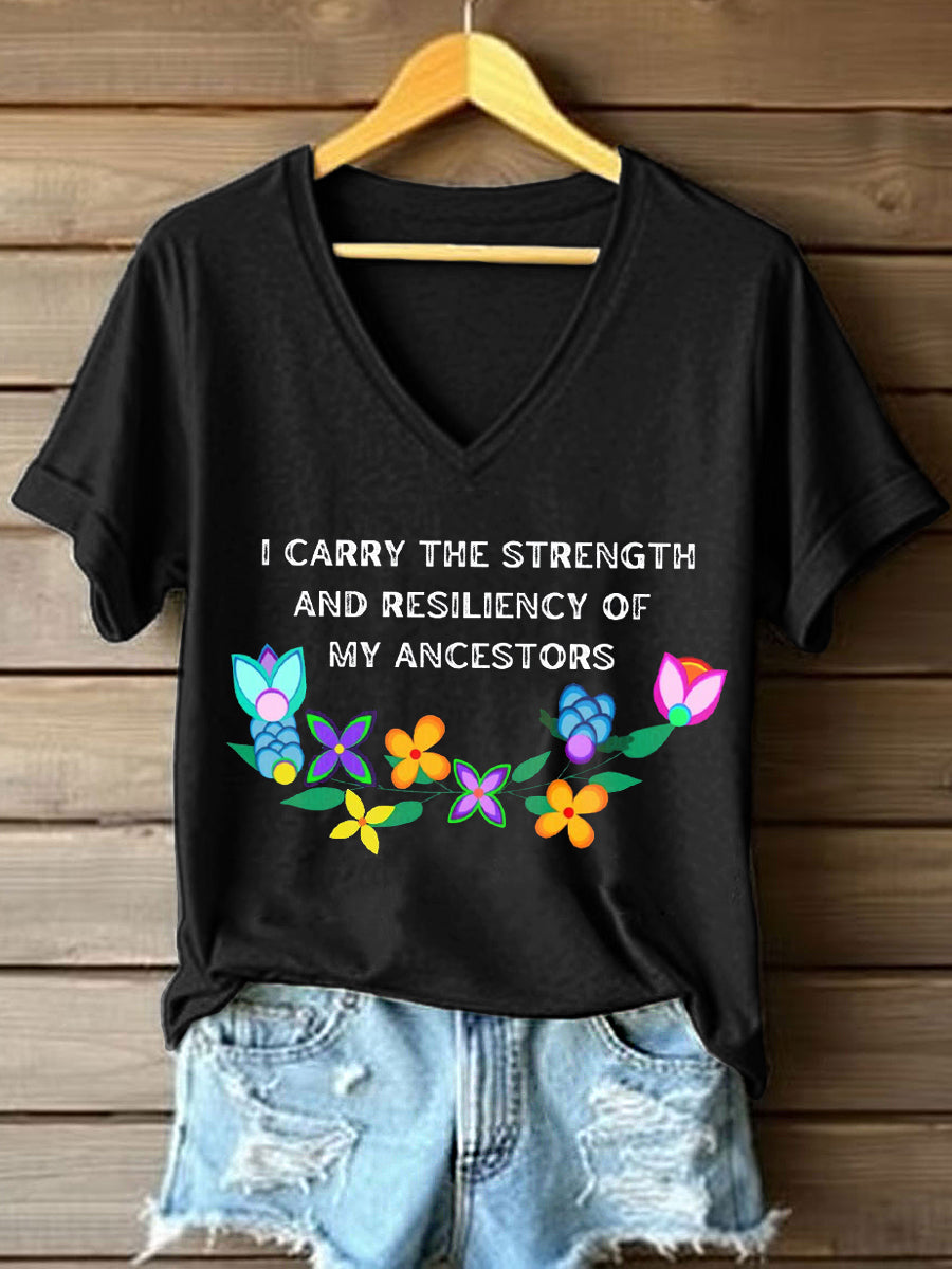 Women's I Carry the Strength And Resiliency Of My Ancestors Print V-Neck T-Shirt