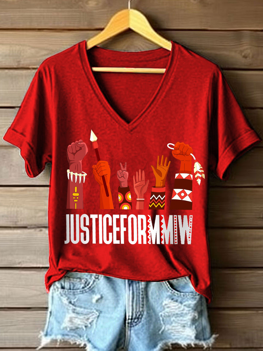 Women's Justice For MMIW Print V-Neck T-Shirt