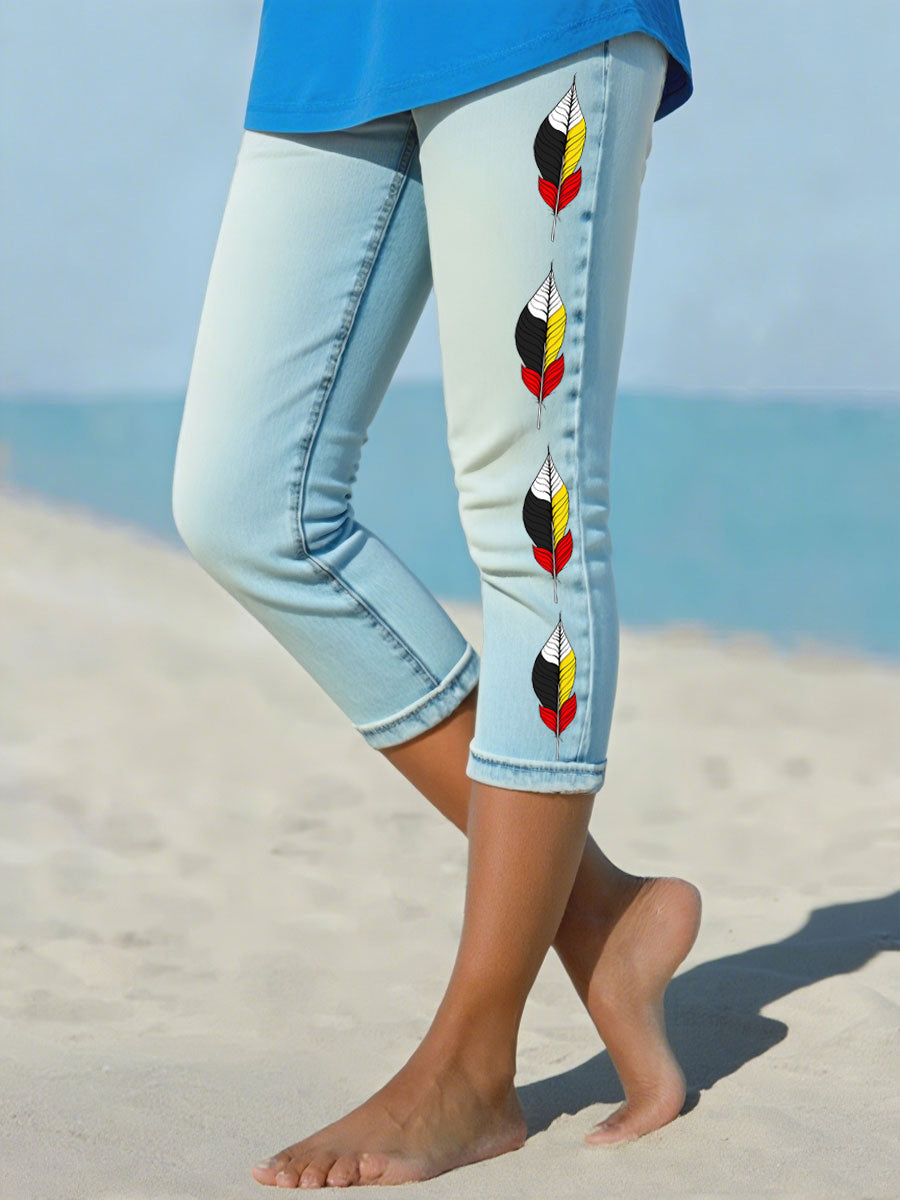 Women's Native American Medicine Wheel Feathers Cropped leggings