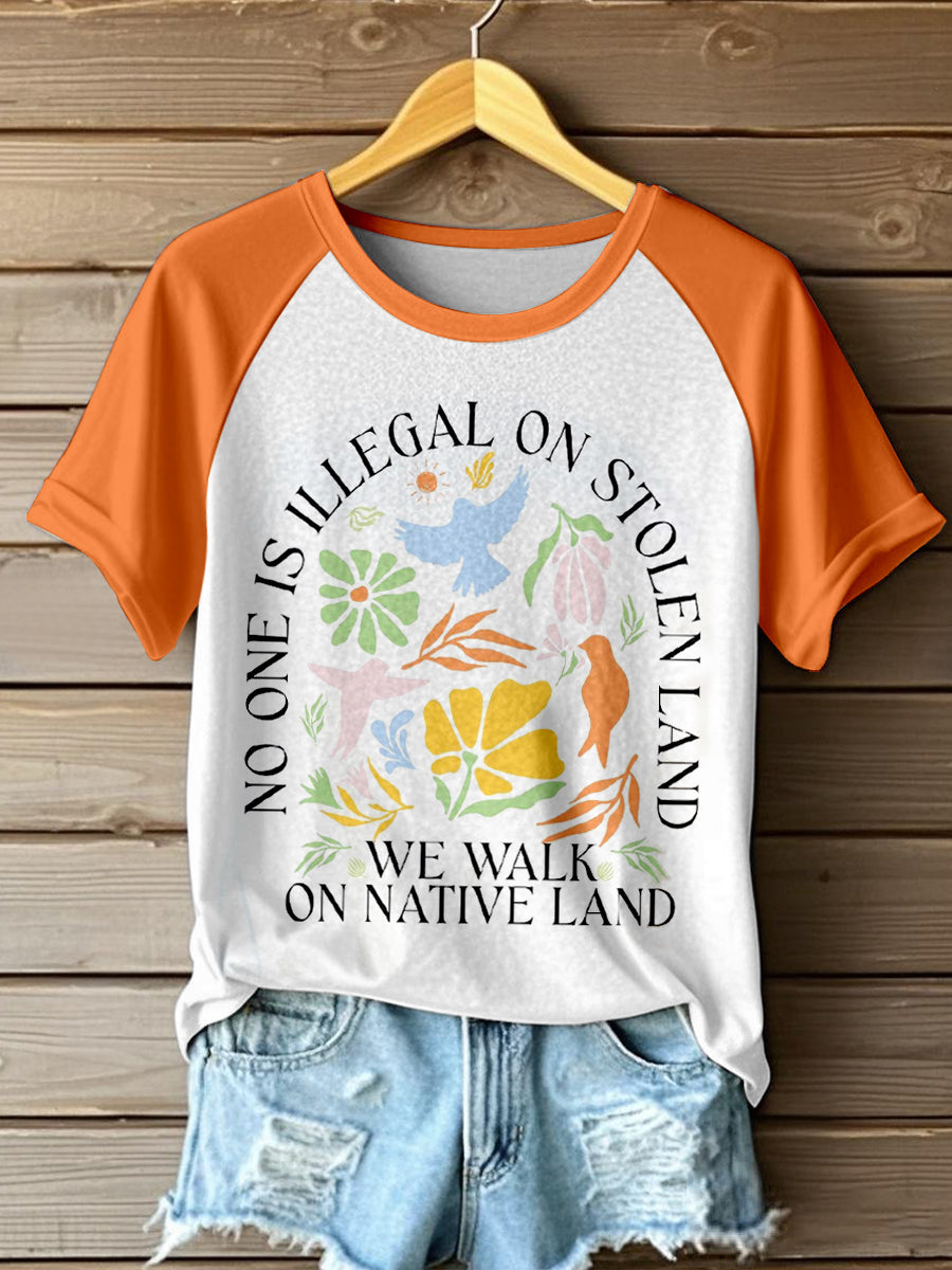 Women's No One Is Illegal On Stolen Land Print T-Shirt
