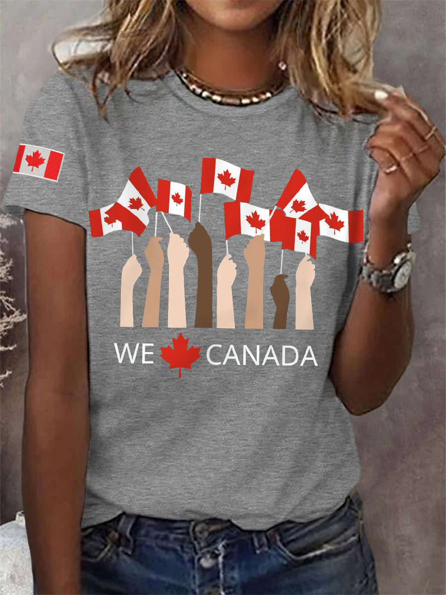 Women's Proud To Be Canadian,Canadian Flag Print Casual Tee
