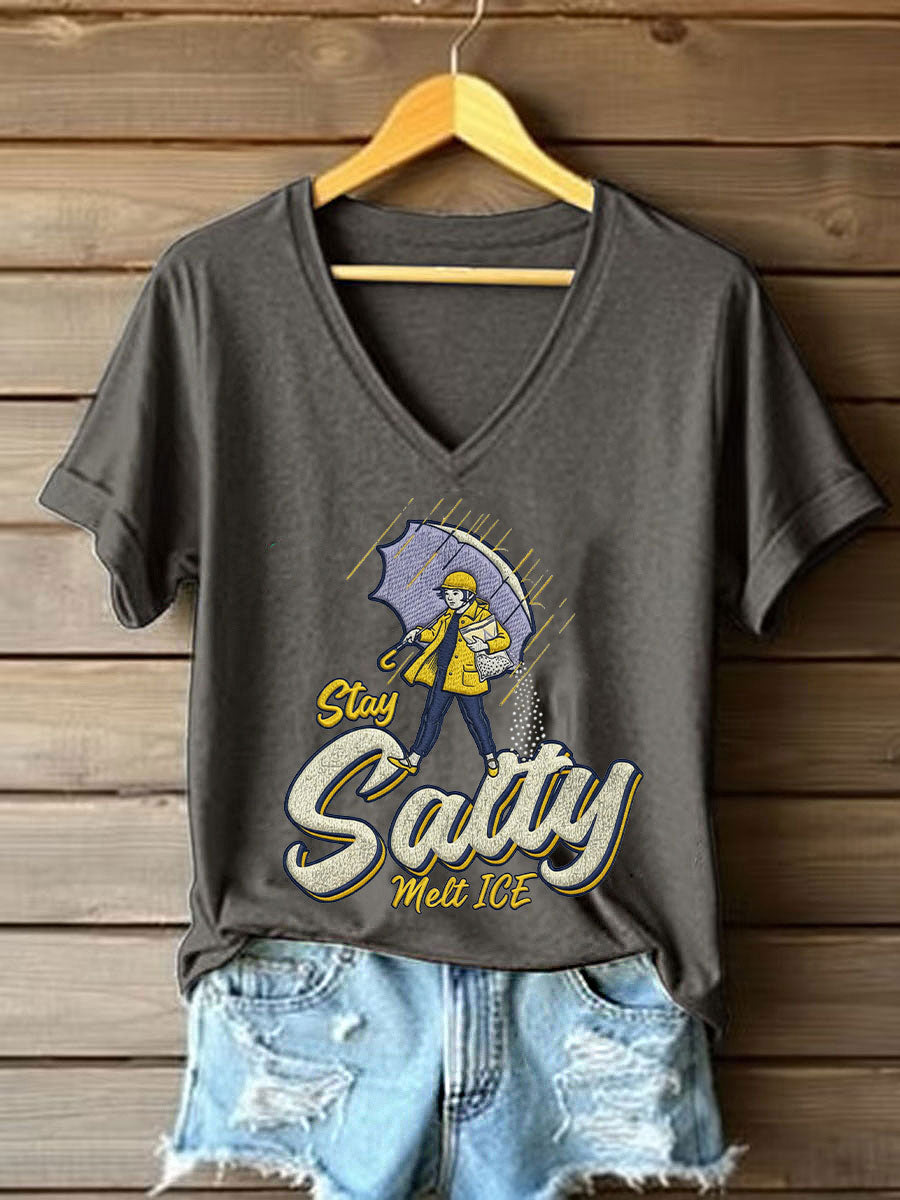 Women's Stay Salty Melt ICE Printed Casual T-Shirt