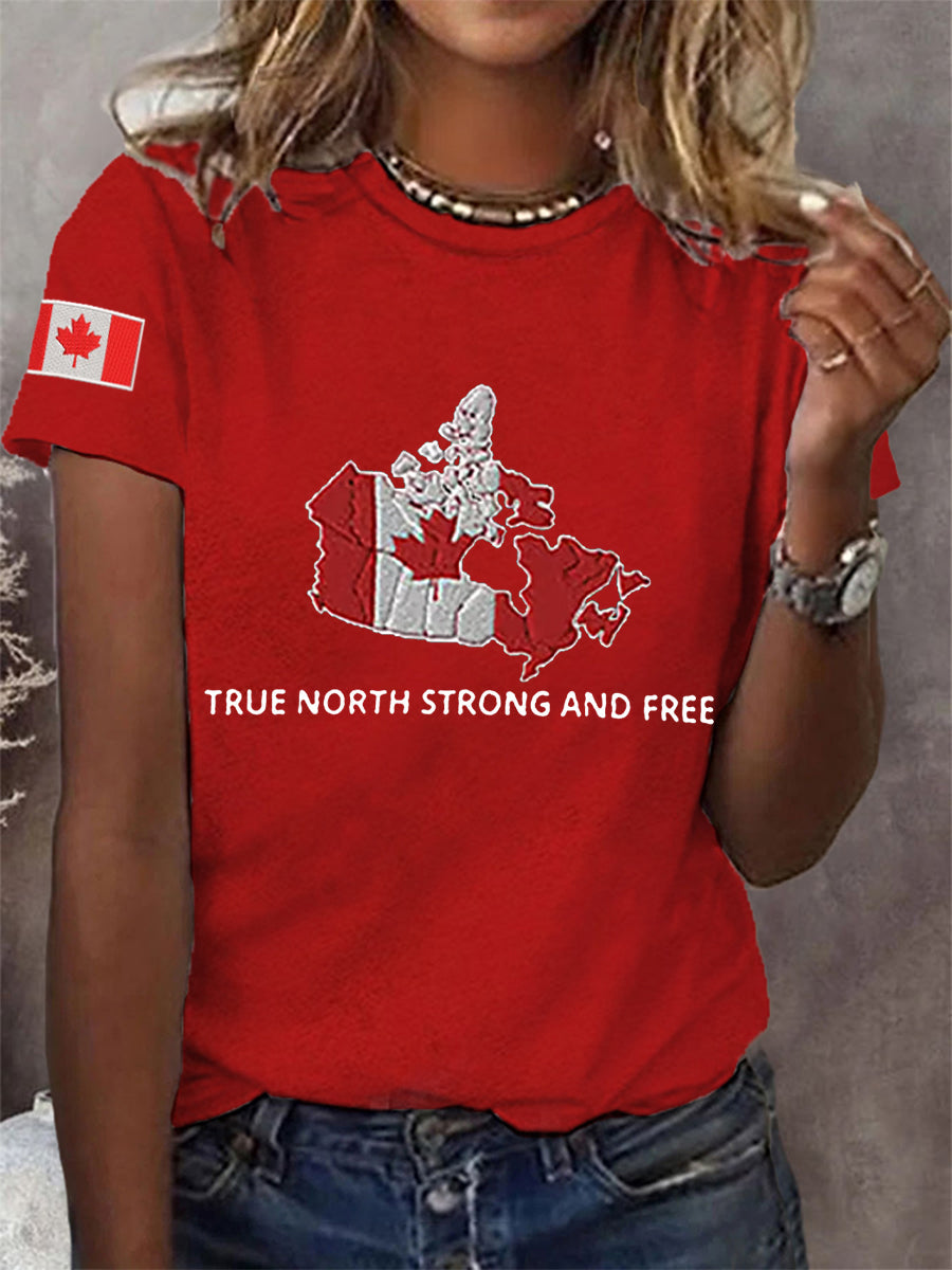 Women's True North Strong And Free Canadian Flag Print Casual Tee