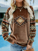 Women's Vintage Western Ethnic Aztec Pattern Casual Cozy Flannel Sweatshirt