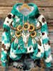 Women's Western Bull Skull & Sunflowers Turquoise Cozy Flannel Hoodie